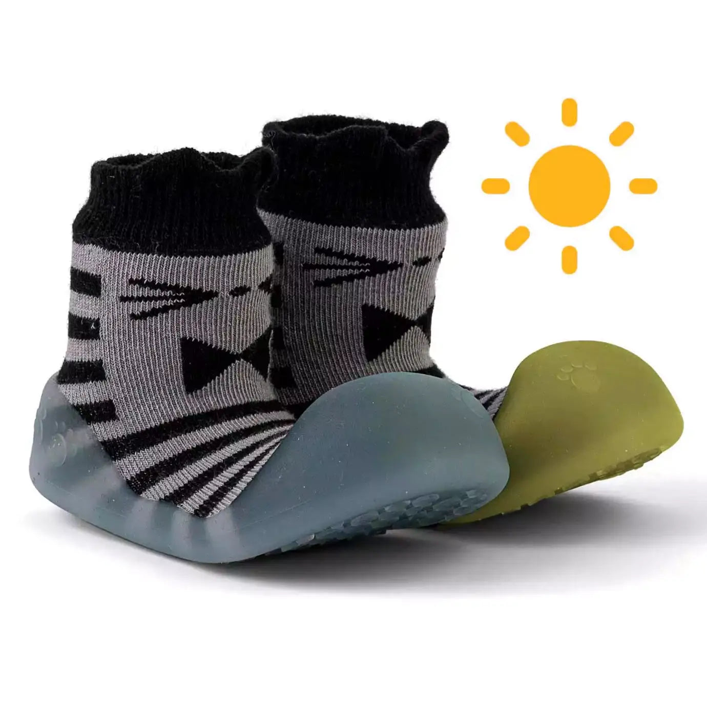 BigToes Chameleon reúne tudo o que os pais procuram nos meses em que a marcha dá os seus primeiros sinais. A forma é ampla e respeita a anatomia, permitindo que os dedos se movam e agarrem o chão. A sola é antiderrapante, suave e maleável, para que a criança sinta o piso e desenvolva equilíbrio com segurança.